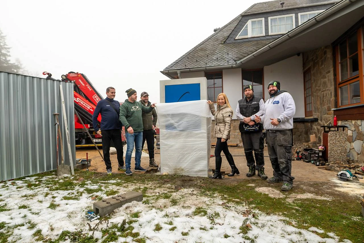 Totem stojí, majitel spokojeně kontroluje výsledek (ano, stojí rovně) a my si můžeme s klidem říct, že další důležitý krok k otevření je za námi.